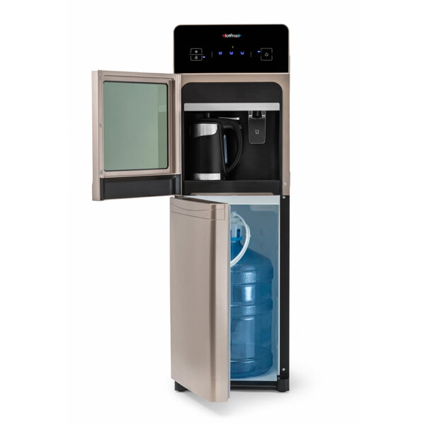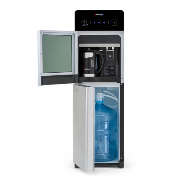 Тип температур води: гаряча – прохолодна – холодна Тип охолодження: компресорний Захист від дітей: є Колір: сріблястий з чорним Продуктивність нагріву: 5.5 л/год (≤ 90°C) Продуктивність охолодження: 2.0 л/год (≤ 10°C) Потужність нагріву: 650 Вт Потужність охолодження: 100 Вт Регулювання температур: ні Тип розміщення: підлоговий Розміщення бутлі: зверху – на…