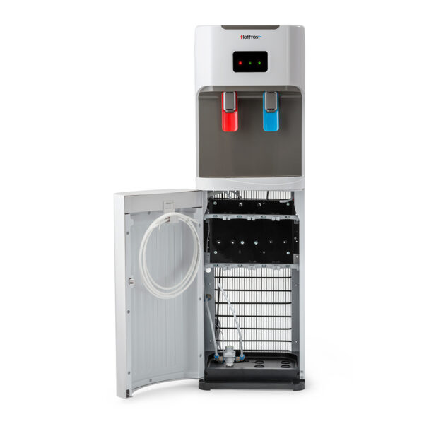 Тип температур води: гаряча – прохолодна – холодна Тип охолодження: компресорний Захист від дітей: є Колір: сріблястий з чорним Продуктивність нагріву: 5.5 л/год (≤ 90°C) Продуктивність охолодження: 2.0 л/год (≤ 10°C) Потужність охолодження: 120 Вт Регулювання температур: ні Тип розміщення: підлоговий Розміщення бутлі: зверху – на кулері Матеріал бака гарячої…